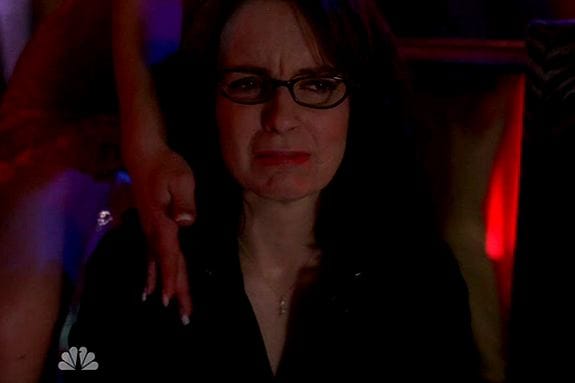 As for the rest of the episode, I found Liz and Tracy's rivalry hit-or-miss. For every gag that worked (Pete warning Liz not to accept the Race Card), there were one or two that didn't (I'm a fan of slapstick, but Liz's long battle with the water cooler never clicked for me). The idea of a professional Tracy (complete with Cosby sweater and reading glasses) was terrific, but they never really sold Liz forcing herself to be more like Tracy. (After all, didn't she go with him to a strip club in the pilot without being nearly as horrified? Still, I liked Tina Fey's delivery of "Let's go see some naked daughters and moms!")