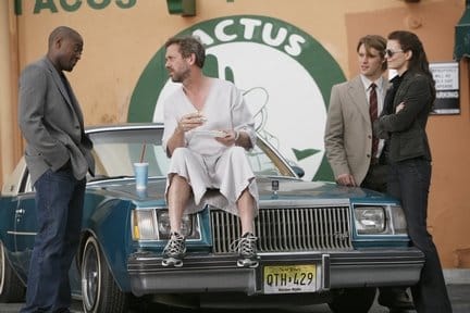 First open question: Is there anyone here who hadn't figured out that the entire post-shooting episode was a hallucination long before it occurred to House? Second question: If you figured it out, when? For me, it was as soon as House woke up from his beating of Wilson and Elias Koteas (whose character in the script was named Moriarty, in a nice touch to our hero's inspiration) knew more than he should have been able to observe while lying in a neighboring hospital bed. I probably should have figured it out after House's sidekicks found a way to get him out of his handcuffs and took him out to a Mexican restaurant (and one in a neighborhood that doesn't remotely resemble anything in or around Princeton or Plainsboro), but I suppose I was too impressed by Cameron's sunglasses to notice. (Seriously; those were very cool.)
