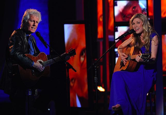 8:59: Brooke and Graham Nash (of classic rock supergroup Crosby, Stills and Nash, for you young'uns) duet on "Teach Your Children." Brooke can't really harmonize, but it's still like the ultimate Nanny Brooke song.