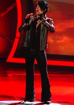 Adam Lambert, "Ring of Fire": Like David Cook last year and Blake Lewis the year before, Adam seems determined to bend the theme each week to his own skill set. Unlike those two guys, he can be really annoying when he does it. I don't object to the arrangement itself -- it's no more a reinvention of the song than, say, Johnny Cash's version of Nine Inch Nails' "Hurt" -- than the random, self-indulgent belting and wailing at the end. It's clear that Adam has one of the better instruments of the season -- not to mention stage presence to spare -- but I have yet to really like anything he's done with that instrument.
