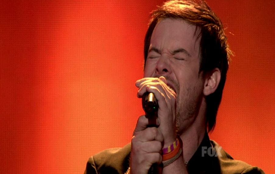 Syesha Mercado, "Fever": I think the judges totally missed it with their complaints that this choice didn't show who Syesha is. This is exactly who she is: a pretty, slightly above-average vocally, cabaret performer. Paris Bennett sang rings around this version when she did it in season five, but at this point, Syesha has decided to embrace her inner vamp, wear as many flattering and sparkly dresses as possible, and turn her final weeks on the show into an open audition for any Broadway parts where an ex-"Idol" finalist might be a box office draw. And I at least appreciate that she doesn't give us the same performance nearly every time out, which is more than you can say at this stage for either David.