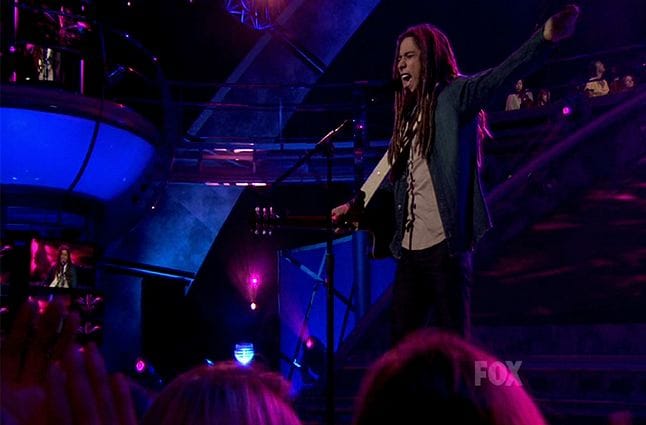 Jason Castro, "Mr. Tambourine Man": If it seemed like Jason had given up during his first song, it wasn't apparent here. Yes, the lyric flub at the end of the chorus was heinous, and he looked suitably chastened for having done it, but if you can somehow remove it from the equation, this was the best Jason has sounded in weeks. He played and sang like he cared about the song, and about being in the competition, and if he had one of the worst brain-freezes in the show's history at the halfway mark, he didn't let it rattle him and kept travelin' thru.