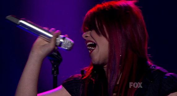 Once again, I have to rail against the bumbling on this show. Once upon a time, they were able to squeeze ten songs into an hour. Ten. Now they freak out if the number goes over seven, in part because four judges is too many, in part because all the judges talk too long, in part because there's too much window-dressing (I like Slash, but he's unnecessary), but mainly because the show has just become so fat and lazy and arrogant that they couldn't find a way to make it work. So rather than letting each contestant sing two solo songs, we got one solo apiece, followed by two duets.
