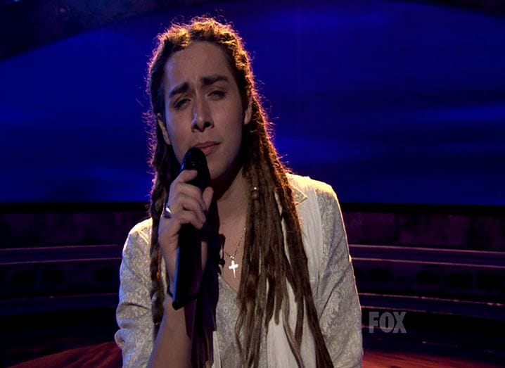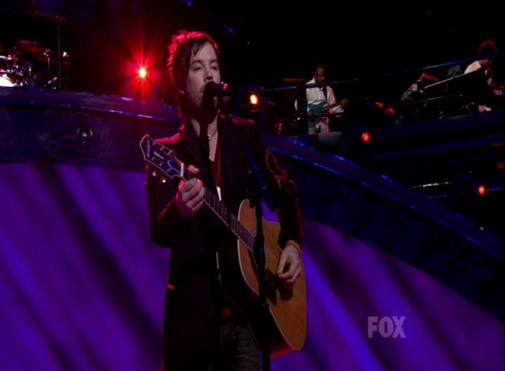 Jason Castro, "Forever in Blue Jeans" & "September Morn": Again, this theme should have been in Jason's comfort zone, but it mainly just gave him an excuse to hide within his three-note range (or, in the latter song, one-note), let the string section make him seem more impressive than he actually was, and hope that his smile and dimples would carry the rest. "Forever in Blue Jeans" wasn't bad as a bit of busking (and damn/thank you, Simon, for making me unable to see Jason as anything but Glen Hansard at the end of "The Commitments"), but he wasn't even trying on "September Morn." Maybe he was just freaked out by Paula's psychic criticism?