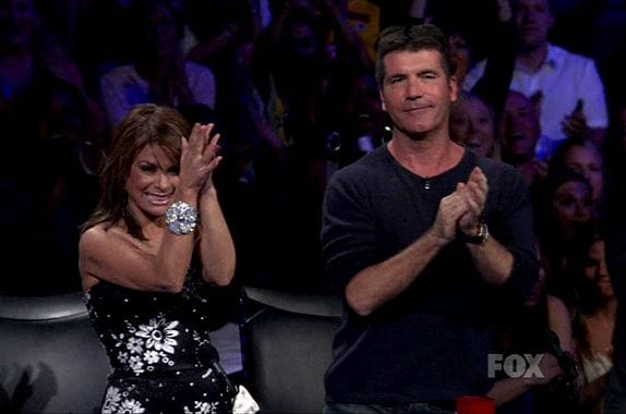 I ordinarily top off these "American Idol" reviews with a picture of one of the performances, but the image of the night was Simon Cowell up on his feet, giving a standing ovation for the first time in a long time, if ever. (Can anyone remember him doing that before?) Thoughts about what Adam did to absolutely deserve that, and all the other performances, coming up just as soon as I apologize for my bad attitude last week...