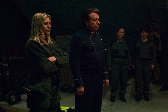 Because so much of this hour was devoted to setting up the true finale, there wasn't as much time for the big emotional wallops we've been getting throughout season four, but you'd have to be made of stone to not be incredibly touched by the sight of Bill Adama welcoming the woman he loves as she joins him on this suicide mission, and on Kara Thrace helping the president she admires stand up even as Laura's legs want to give out from under her.