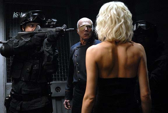 - Getting back to Lampkin's opening argument, does he have a point? If Laura was still president (and somehow had allowed herself to be convinced into settling New Caprica), would she have defied the Cylons? And would that have just resulted in her death, or the death of all humanity? It's a shame that the prosecutor can't introduce Baltar's role in the genocide (Lampkin's crowning achievement was getting Caprica Six back on their side), and that nobody knows that Baltar was responsible for the nuclear detonation that killed a good chunk of the fleet (add that to the whiteboard differential) and tipped off the Cylons about the location of New Caprica.