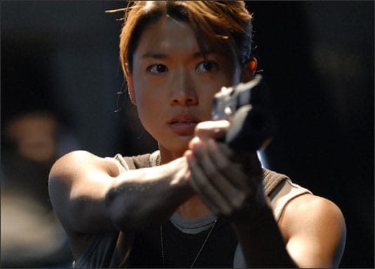 "Guess What's Coming to Dinner?" concludes on a couple of shocking developments that should blow the shaky human/Cylon alliance all to hell, as Athena empties her gun into Natalie just for looking at Hera funny while the Hybrid is reactivated and immediately jumps the baseship away with Roslin, Baltar, half of Galactica's fighter strength, and a whole bunch of pissed-off Centurions aboard.