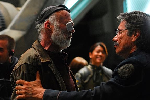 "Pegasus": There but for the grace of the gods could have gone Bill Adama, as the rag-tag fleet reunites with the only other surviving battlestar, and we discover how things might have gone if Adama didn't have Roslin yelling at him all the time about the rights of the civilian ships. Just a gut-wrencher from start to finish, and the scene where the two XO's get drunk and Jack Fisk tells Tigh what Admiral Cain (Michelle Forbes, perfect) has been up to all these months is so vivid that it made much of "Battlestar Galactica: Razor" feel unnecessary to me.
