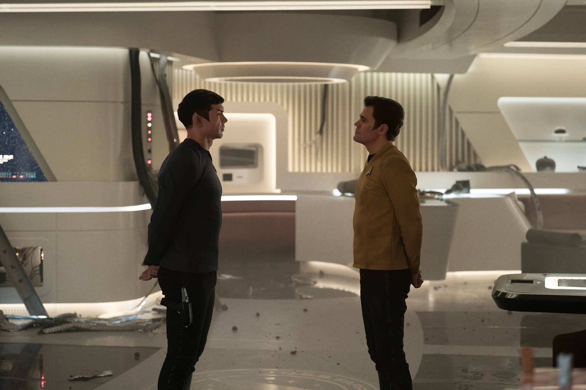 Kirk is the subject of the episode's single best scene, where Pike talks to him about how to live with your actions causing the deaths of other people. James T. Kirk's ability to compartmentalize the hard parts of the job is just as much at the core of the character as his famous lack of interest in following roles, or the way he sits in the captain's chair, and it felt interesting to hear him get some advice on the subject from his predecessor. But the conversation works primarily because Anson Mount is so good, and because Strange New Worlds has turned Pike into a character who feels specific to this show, even if he's appeared in other forms before. Even after Paul Wesley found a way to seem more Kirk-like without outright doing a Shatner impression, he still feels like an inferior copy of a copy.
