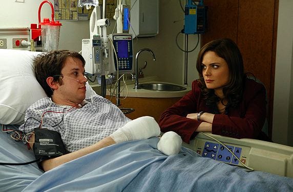 On the other, the resolution to last week's shooting cliffhanger was so lame that it left a bad taste in my mouth for the rest of the episode. We all knew Booth wasn't going to be dead -- you don't kill the buddy on a buddy show -- but to resolve it in such a silly way, with no real emotional follow-up was just awful. Sure, Bones was annoyed for a few scenes about Booth not telling her the truth, but nobody else was either upset or relieved to see the guy, and other than Angela being too sad to go to the funeral alone, nobody even seemed that bothered when it seemed he was dead. If they were going to shrug the thing off so quickly, why even bother to do it? This was the worst kind of sweeps stunting.