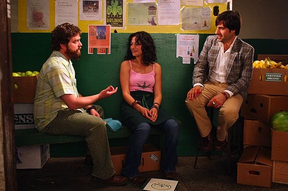 I'm too busy watching the World Series to write much about tonight's penultimate episode of "Bored to Death" season one. After last week's George/Ray breakthrough, I was disappointed that the two had so little shared screentime tonight, but at least "The Case of the Stolen Sperm" had one of the show's funnier faux-noir storylines so far, with some nice guest work by Jenny Slate (filmed before she was cast on "SNL") as the stoner from the food co-op, and some good Schwartzman/Galifianakis teamwork throughout.