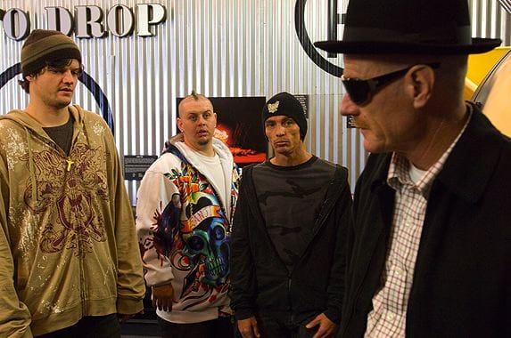 Much of "Negro Y Azul" deals with Walt talking Jesse into greatly expanding the reach of their operation, largely on the basis of the rep Jesse has developed because the greater Albuquerque meth community believes he's the one who dropped the ATM on Spooge's head. And because we spent most of last week's episode watching how events really unfolded at Skank and Spooge's house, using those events as the misleading foundation of a criminal empire is both sadder and funnier than if Jesse's visit had been just one of many events in a busier episode.