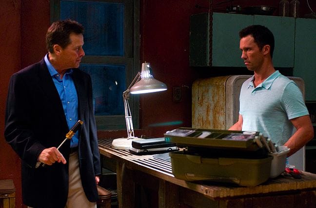 Michael of course had less reason to be afraid around the hitman-hiring stepson (the latest in a long string of post-"Home Improvement" young punk roles played by Zachary Bryan), and slipped convincingly into character as a knife-wielding psycho. In some ways, "Burn Notice" is beginning to resemble the better parts of "Alias" -- not the confusing Rambaldi mythology or constant reboots, but the way it gives the leading man an opportunity to slip into another character each week before he gets to convincingly kick ass by the end.