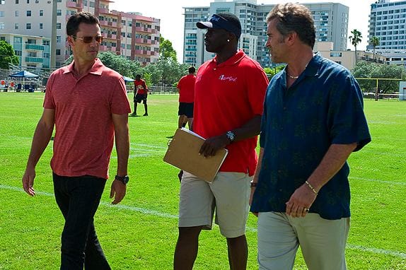 And even with all the arc stuff going on, and the obligatory Super Bowl synergy cameo by Michael Irvin, the episode still managed to tell another entertaining "Burn Notice" case of the week, which was extra cool for pitting Michael B. Jordan (aka Wallace from "The Wire" season one) vs. Sticky Fingaz (aka Kern from "The Shield"). The slo-mo montage of Michael, Sam and Fi suiting up to get into character as rival car thieves filled my heart with Barney Stinson levels of joy, and the guide to bullet-proofing a car was one of the better lessons in hardware store espionage we've gotten in a while.