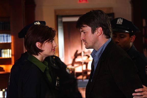"I'm here for the story," Castle (Nathan Fillion) tells her.