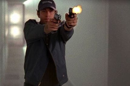 • I'm sure the gag about the man who doesn't like guns but knows how to use them has been featured in many, many, many films prior to it, but the one that immediately popped out at me after Shaw killed Sydney was the end of "Quigley Down Under" with Tom Selleck and Alan Rickman. (Shaw's hatred of guns also nicely set up the moment where Casey quick-draws on Shaw and says, "Something else you should know about me: I love guns.") And whether or not "Quigley" was where they got the idea from, it leads us to...