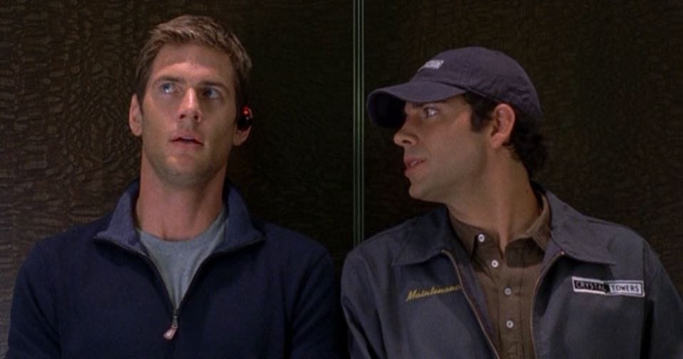 And after last week's episode featured none of the Buy More crew and precious little on the pop culture reference front, "Operation Awesome" brought both back in a big way, as Morgan is again promoted to Ass Man(*), and almost immediately has to deal with a rebellion by Lester and Jeff, who both hate management (ass or otherwise) and who are inspired by an Intersect 2.0 malfunction to start up a Buy More Fight Club.