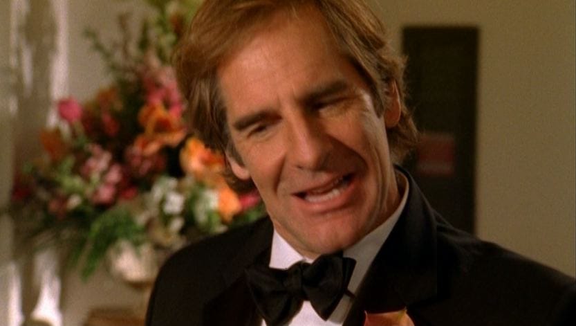 • Scott Bakula punching Chevy's lights out (southpaw!) and relishing the moment;