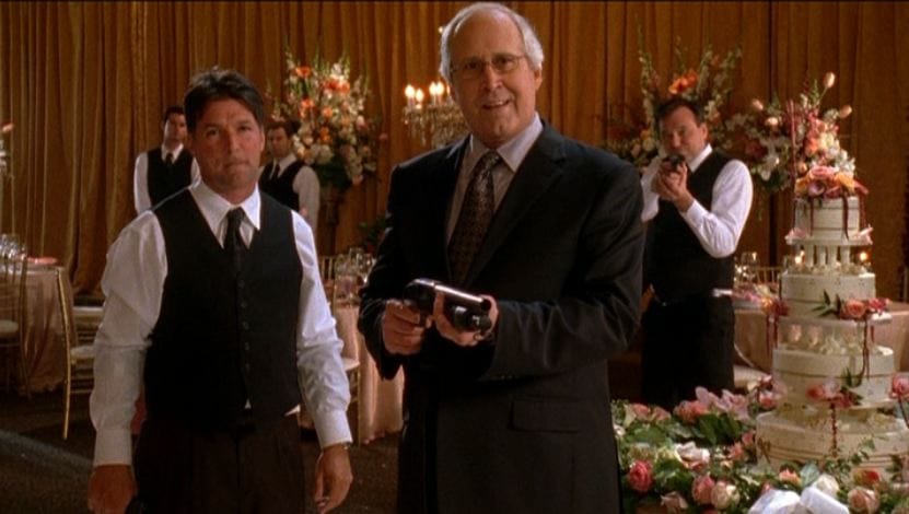 • Chevy Chase at his absolute smuggest, telling Chuck, "Just think: that terrible pun is the last thing you'll ever hear";