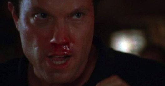 (*) In a way, though, Baldwin's hesitancy at the martial arts stuff made the fight play very much like an homage to Schwartz and Fedak's beloved "Karate Kid" movies, where Ralph Macchio always seemed like he didn't know what he was doing compared to the villains. And am I nuts, or was Casey's swinging hands technique supposed to be a reprise of Daniel-san using the drum technique in "Karate Kid II"?
