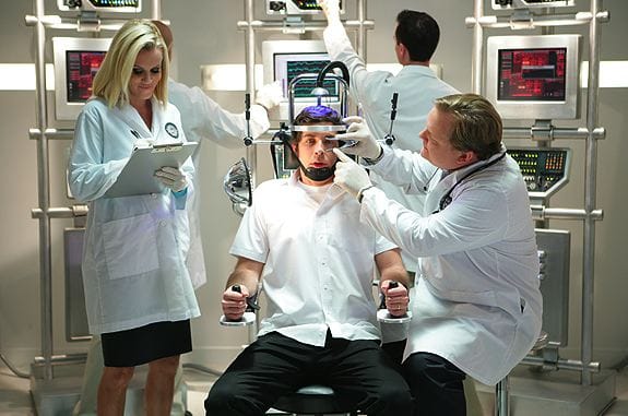 This storyline, and the danger of exposing an average brain to those images, doesn't quite track with the season premiere, where Tony Todd had a bunch of agents all prepped to download the Intersect 2.0, but it did lead to the very cool "Raiders of the Lost Ark" moment in the climax where Chuck made sure he and Sarah were the only ones in the room not looking at the monitors when Casey turned the sequence back on. (Was I the only one hoping to see Richter and/or McCarthy turn to dust on camera? Just me? Okay. That's just how my brain works, Intersect or no.)