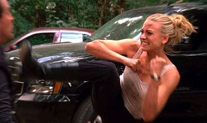 For one thing, we got our first really kick-ass action sequences of the season. It's not that the fights in past episodes (many of them involving Chuck rather than Sarah or Casey) have been bad, but they've lacked the spark that we saw in some of season two's best fights, like Sarah fighting Nicole Richie in the showers or Sarah in the car.