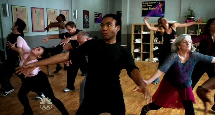 14 episodes into its debut season (which just added three more episode, as part of NBC's push to avoid repeats post-Leno-in-primetime), "Community" is still exploring different combinations of its large cast of characters, here striking unexpected gold with a Troy/Britta pairing. As the show's token straight person, Gillian Jacobs has a tougher job than the other actors, and the writers have often struggled to make her funny when the situation calls for it.(*) But she had some very nice moments here, first with her delight in getting to be outraged over Shirley saying "You people," then with the goofy "Tea for Two" tap dance. And Donald Glover, who's already established himself as a terrific physical comedian on this show, was as fun as you'd expect in showing Troy learning to express himself through modern dance.
