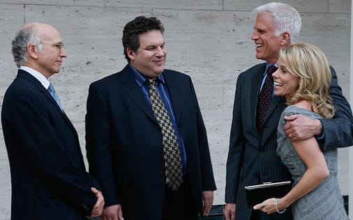 Jeff's anonymous donation, meanwhile, led to all kinds of wonderful, horrible brilliance, whether it was Larry and Leon debating the proper pronunciation of the noun form of "ejaculate" ("Uhjackalit?"), Jeff blaming it on the Passover wine (I have to say, Manischewitz has never put me in the mood before) and explaining that he wouldn't have done the same thing on the high holidays, Suzy accusing Jeff of adultery for pleasuring himself outside the home, or the unfinished scene where Suzy goes to confront Danson. (Larry has said that there was a lot of debate over where to cut that scene off, whether to show Suzy berating him, and eventually they decided it would be funnier for people to imagine all the profanity.)