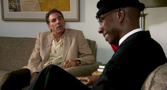 There may have been funnier episodes of "Curb" this season ("Vehicular Fellatio" comes to mind), but none have felt as satisfying on so many levels as "The Table Read." It worked as an episode of "Curb." It worked as a quasi-"Seinfeld" reunion, and as a kind of DVD bonus feature about what life on the "Seinfeld" set was like(*). It mixed the two worlds expertly, with Marty Funkhouser making an ass of himself in front of Jerry and Jerry letting him do it, and with Leon finally, inevitably, crossing paths with Michael Richards. And it all left a big smile on my face.