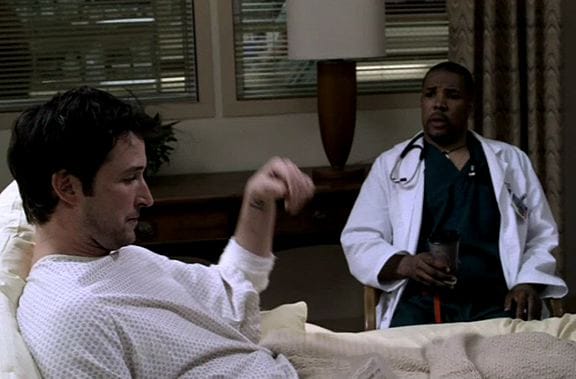 I know all the chatter tomorrow's going to be about Clooney and Julianna Margulies, and understandably so. He's a big flippin' movie star, and Doug and Carol are arguably the most popular characters in "ER" history. And I liked them too and will get to them in a minute. But as Peter Benton was always my favorite character, and the Benton/Carter duo my favorite relationship, the aspect of "Old Times" that really fueled my nostalgic fires was that reunion. It was just so cool to see Peter, older and wiser and more careful -- the guy from the pilot would have bristled at being asked to run through a checklist, but I totally see him doing it here, especially with his old protege's life at risk -- and yet still ready and eager to hassle Carter because he can. Eriq La Salle doesn't act that much anymore, but he slipped back into character -- and he and Noah Wyle slipped back into their old rhythms -- like it had only been five minutes since he left.