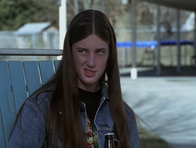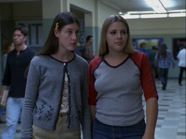 Before Lindsay can even realize what's happening, Kim and Millie have quickly become BFFs, with Kim encouraging Millie to blow off studying to shop for records at the mall, just so long as she wears her big coat with all the pockets. (Millie may be in mourning, but she's still Millie, and has no idea what Kim's up to; she thinks it's the awesomest thing in the world that Kim likes that coat so much.) Lindsay's worried for Millie, but Millie says she finally understands why Lindsay joined the freaks: "You were just exploring, and now I'm exploring, too." Lindsay tries to get Kim to leave Millie alone -- "I don't think we should interfere with her life" -- and Kim offers us a hint of the person she was in the first few episodes. She asks why Lindsay can hang with them and Millie can't, suggests that Lindsay treats Millie as her safety valve for whenever her bad new friends get too scary (she still hasn't let go of the events of "Looks and Books") and threatens to beat up Lindsay if she tells.