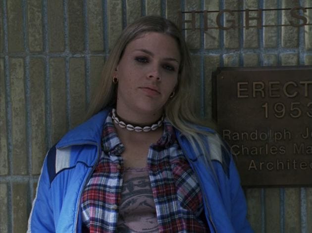While walking the halls with Kim, Lindsay complains about the summit and how it'll feel like going back into school. Kim, as she did with Daniel, declines to feign sympathy, instead noting that at least Lindsay gets to leave town for a while and do something, while Kim herself will be stuck behind because she has no money and, besides, Daniel hates going anywhere. Lindsay -- relatively well-off Lindsay, with her functional, supportive parents -- tries to suggest that Kim can go anywhere she wants, but Kim -- she of the ramshackle home, harpy of a mother and creepy stepdad -- replies, "That's easy for you to say, Lindsay, 'cause you get to leave. I don't."