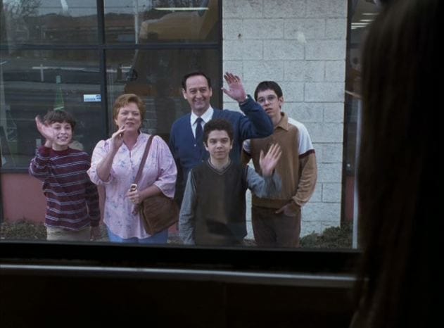 We hear the acoustic guitar of "Ripple" begin to play, and Linda Cardellini absolutely destroys me with the way she turns back from the bus steps and says, "Hey, Mom?" Jean, ignorant of what her daughter plans to do, beams and says, "Yes, sweetie?" Lindsay, fully aware that she's about to break her mother's heart -- that she's going to fundamentally alter her relationship with her parents, forever -- tries to find a way to apologize in advance, but all she can say is, "I'll see you soon."