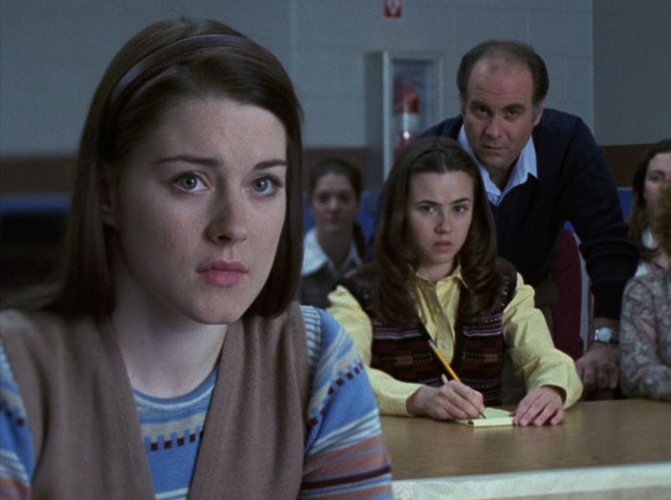 Spoilers for the "Freaks and Geeks" episode "Looks and Books" coming up just as soon as I scarf down an entire mall pretzel...