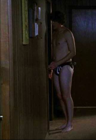 Lindsay has trouble sleeping, too aware that her stalker ex is sleeping a few yards away on the couch, and Nick stays true to form by rapping on her door in the middle of the night, hoping to get in to, um, get in. Lindsay wisely refuses to open the door, but the camera cuts outside to show Nick wearing a pair of bikini briefs and looking as ridiculous as he has in every other episode combined. (In fairness to the ever-fearless Jason Segel, he's in decent shape, but any non-ripped guy is going to look dopey in those undies.) Nick insists he just wants to thank Lindsay for her parents' kindness, but she begs him to get back to the couch before he wakes Harold. Nick finally acquiesces, but just as Lindsay's head has hit the pillow again, she hears Nick groaning in pain. She goes out to investigate and has the appropriate reaction to his clothes (or lack thereof) while he explains that he stubbed his toe. (Making the wardrobe sight gag complete, Sam emerges from his room in a pair of Star Wars pajamas that Nick compliments.)