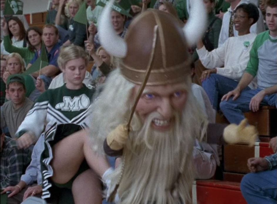- A few days after this episode aired, Matt Seitz came into the office raving about all the POV shots of Sam and then Neal through the mascot head's eyes, convinced that it was the director's way of doing a split-screen without anyone realizing it, but when I rewatched the episode, I didn't notice any POVs where one Viking eyehole was showing a drastically different scene than the other. But Matt's the guy who directed a movie, so maybe he's seeing more than I am.