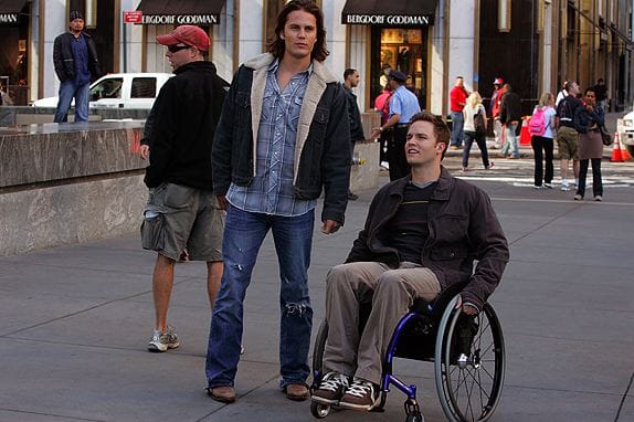 * Two lovely little touches in the episode's two best scenes: 1)Coach the old man rubs his arm and needs some aspirin after throwing so hard for so long; 2)Erin's parents' house isn't wheelchair accessible, and so Erin had to hand Noah to his daddy. Sometimes with this show, it's the small touches that make a huge difference.
