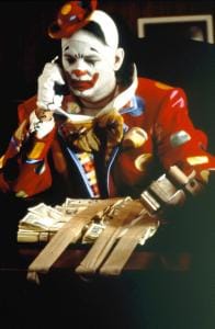 e and went from theaters in about two weeks in the summer of 1990. Co-directed by Bill and starring him, Geena Davis, Randy Quaid and an all-star roster of Hey It's That Guy!s, including Jason Robards as the police chief (and the man on the receiving end of the quote in the subject line), Bob Elliott as a braggart security guard, Phillip Bosco as a bus driver who's serious about the exact change rule, Tony Shalhoub as a cabbie of unknown ethnic origin, Stanley Tucci as a wiseguy, Phil Hartman as a gun-toting yuppie and too many others to name (I think Kurtwood Smith pops up at one point), it works as both a hilarious caper movie and satire of what a pit New York was at the time. Basically, the robbery is easy; getting out of town with the cash is the hard part, as Bill, Geena and Randy run into trouble a mugger, the fire department, city utility workers, the MTA and, in my personal favorite scene, a pair of Latino men jousting on bicycles. (Quaid: "It's bad luck just seeing a thing like that!")