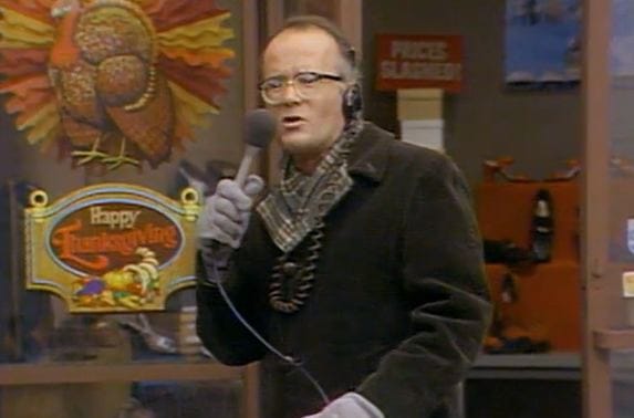 Happy Thanksgiving, everybody. The only TV watching I'll be doing today will involve football (and wondering why half my fantasy team is playing this afternoon and evening), but for those of you near your computers and in need of some more Thanksgiving-specific programming, I give you the legendary "WKRP in Cincinnati" Thanksgiving episode over on Hulu. And YouTube has the classic "Cheers" Thanksgiving episode in these three parts.