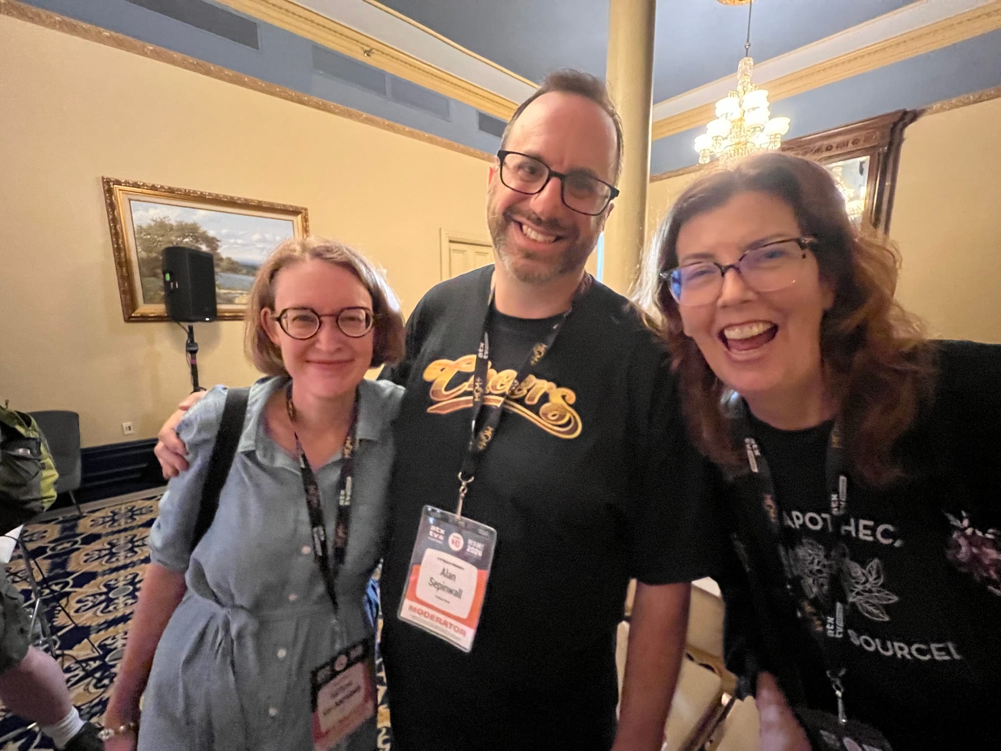 I got to be part of six wonderful panels, most of which should eventually wind up on the ATX YouTube page, and I plan to embed each one here as they appear. Because the organizers kept me so busy, I only had time to attend one panel I wasn’t moderating or otherwise participating in, but it was a great one: a reunion of the creative team and some of the cast of Halt and Catch Fire, 10 years to the day that it debuted on AMC. It was, like most ATX events, a love-fest, and Kathryn did such a good job asking questions and picking out clips that I immediately downloaded multiple episodes from AMC+ to begin a rewatch on the flight home.