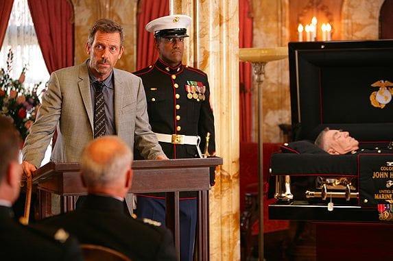 And good on the writers for letting House be right about his dad not being his bio-dad. The more obvious, easier route would have been for him to discover that his suspicions were wrong all these years. I'm disappointed we didn't get to see Hugh Laurie and R. Lee Ermey work together one last time (I wonder how much Ermey got paid to lie in that coffin?), but the entire funeral storyline was strong enough that I didn't even mind how the patient of the week was once again a "Grey's Anatomy"-style sledgehammer parallel to the life of one of the docs.