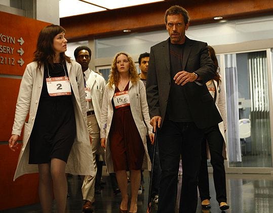 Boy, that was fun, wasn't it? House behaves like an overgrown child half the time anyway (that's a conservative estimate), so why not just give him an army of underlings he can treat like so many toy soldiers? Randomly firing people (including the sassy ER doctor from last week, lest we assume she was in line to be the new Cameron), forcing everyone to go by a number, making people wash his car, constantly mixing and matching them into trios (usually in the same two guys and girl configuration of the traditional cottages), making the Mormon drink, and, in my favorite moment, breaking up an argument between the twins with "Stop it! This argument is distracting every male and lesbian here!"