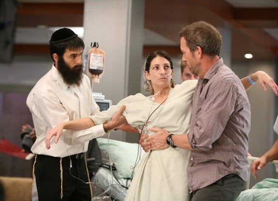 I really liked the Hasidic couple story (featuring Sarah Silverman's sister Laura), both for the characters themselves and for the way the new team interacted with them. After they spent the entire Super Bowl episode harassing Cameron, it was good to have them in the thick of things, applying their own personal biases to the case in the same way the old team (Cameron in particular) might have. I especially liked Taub's spiritual semi-awakening, and then Kutner's comparison to the varying degrees of geekdom was a funny agnostic touch.