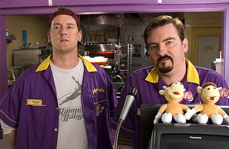 I have friends like Fienberg who felt the more philosophical parts of "Clerks II" were just getting in the way of the comedy, but I liked them. Again, my life (including a wife, a daughter and a stable, non-soul-deadening job) doesn't really resemble our heroes', but there are still those moments where I stop and ask the same questions about my future. Now, I saw "Jersey Girl" when Julia was only a few months old and I was struggling to adapt to the demands of parenthood, so that movie should have spoken to me as much as "Clerks II" did, but I was just as bored by it as the rest of the world. I think Dante and Randal are just much more specific, interesting and -- most important -- funny characters than Affleck was in "Jersey Girl."