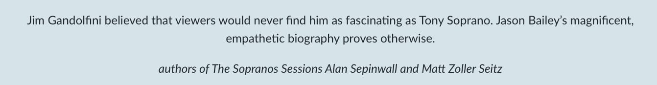 Ordinarily, the book plugging around here goes to the stuff I’ve written — which are all still available to order wherever books are sold — but I’m kicking things off this week with a book where my only contribution is a blurb on the jacket: Gandolfini: Jim, Tony, and the Life of a Legend, by Jason Bailey, now on sale from Abrams books.