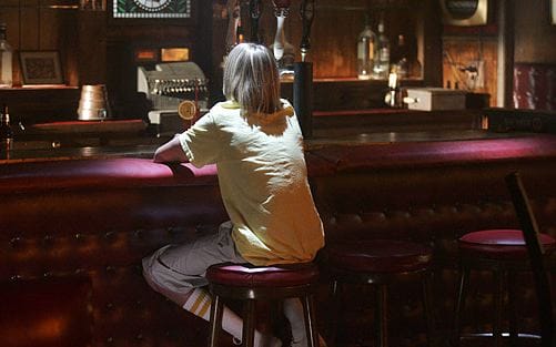 But the highs, I'll admit, are pretty damn high. I don't usually think of Milch as a visual writer, and yet some of the strongest moments of "John" have been entirely wordless: the image of Shaun's wetsuit hanging empty like a ghost or a hanged man; the casual insertion of Mister Rollins (the grey man who molested Barry) in the background of the bar scene; and the closing sequence of Butchie sitting in the water, waiting for a wave to come.