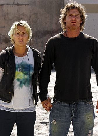 On the other hand, we come to the end of the season -- and, I suspect, the series, for reasons I can elaborate on one last time below -- with no greater understanding of John's (and Milch's) master plan. The episode just keeps piling on the subplots and characters in a way that seems less in service to the story (whatever it is) than to Milch's desire to, say, squeeze in Jerri and Dwayne, or to give cameos to old buddies like Keone Young (aka Mr. Wu, as one of our Hawaiian visitors), Peter Jason (aka Con Stapleton, as the car salesman who, it's implied, may be John's "father") and Bill Clark (aka the real mind behind "NYPD Blue," who pops up as the Imperial Beach chief of police with the sickly dog). And even Linc only can get so far with John.