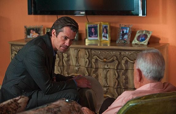 As I've said before, FX sent episodes 1, 2 and 4 out for review while last week's "Fixer" was held due to post-production issues. So since I loved the pilot (which had the Elmore Leonard story to borrow from) and didn't love the second episode, "Long in the Tooth" served as a kind of tie-breaker, and the episode that convinced me that Graham Yost and company can make an Elmore Leonard show even without specific Elmore Leonard source material to lean on.