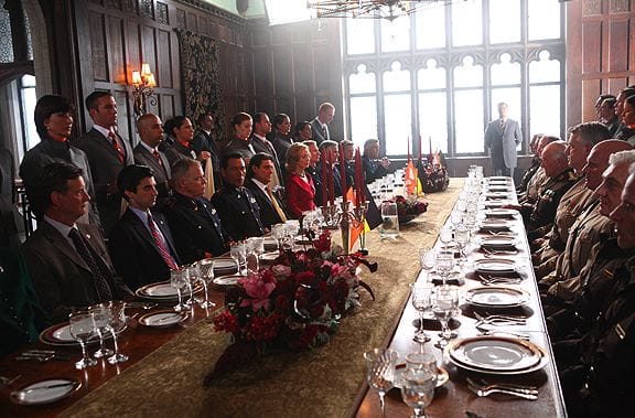 The peace negotiations with Gath give us our first look at the other side, and we see that the enemy isn't quite so refined -- a poorer country with no great city and some kind of military-led dictatorship as opposed to Silas' more glamorous monarchy. It's still not clear if this is a completely alternate reality or if it's supposed to be our Earth with some key historic differences (David does play a very familiar-sounding classical piece on his piano at one point), so it's hard to know what the rest of the world's governments are like, but in these two, Gath is definitely the jealous younger sibling.